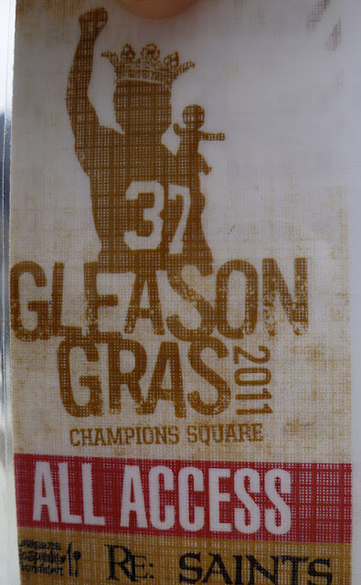 Along with all the fun came a lot of emotions. Part of me wished Gleason Gras never had to happen. No t-shirts, no bands, no food. Thinking that doesn't change anything so it was important to be in the moment and think about all the good that was happening at Gleason Gras! I remember telling Stephen this summer how sorry I was that he was going through this. He said, "It is what it is"! That is the truth. Stephen has been a great example for all of us and has shown us how important it is to live life the best you can no matter what. This little girl really touched our hearts. She had a card with the Saints logo she had made on the front. Inside it said, "Don't worry God is with you". AMEN little one. You said it all. I looked at Kyle and Keri and saw their tears and felt my own coming on. We hugged!