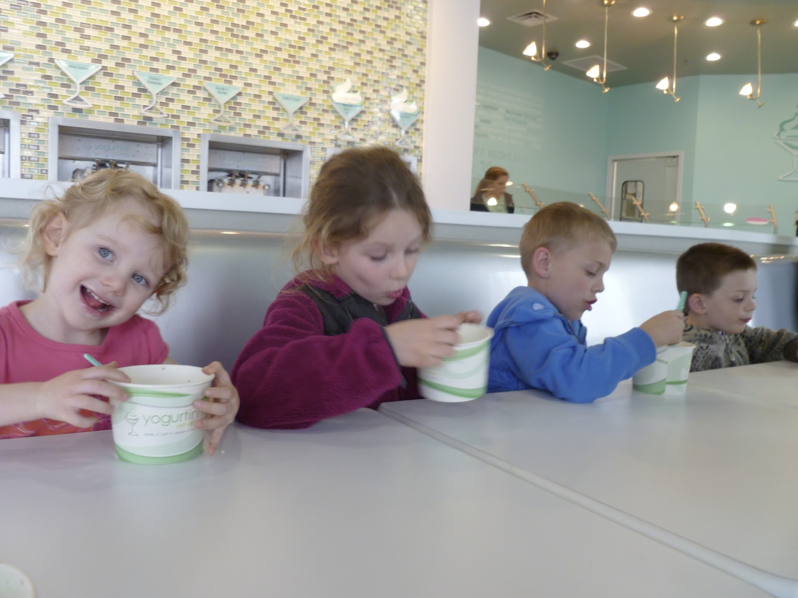 Naps again and then to the yogurt shop! Goodies by the pound!